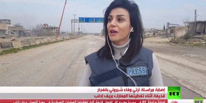 La corresponsal de la cadena rusa en árabe Russia Today, Wafaa Shabrouni, resultó hoy herida durante su cobertura periodística a los operativos del ejército en la recién liberada ciudad de Maaret Al-Nouman, en la provincia de Idleb, 330 km al norte de Damasco.