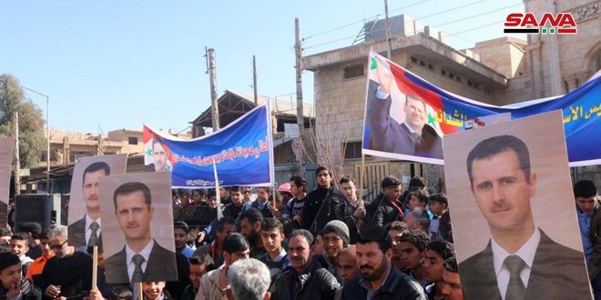 Durante el actos, los ciudadanos izaron banderas nacionales sirias y fotos del presidente Bashar al-Assad.