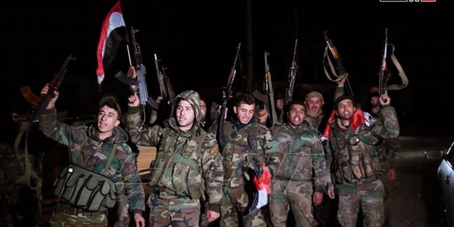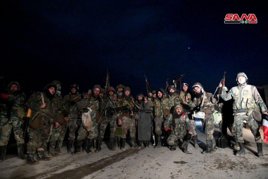 Las unidades del ejército árabe sirio que avanzaban desde el sudoeste de la provincia de Alepo se reencontraron triunfalmente con las unidades que avanzaban por el este de Idleb, en la loma al-Eis.