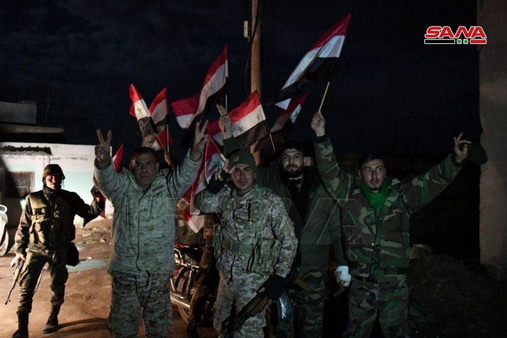 “El ejército continuó sus avances y liberó los poblados de Kosnia, Tel Bayer, Rasm Sahriy, Banss, Rasm Eis, Sheikh Ahmad, Abu Kanseh, Yub Kass, Um Utbah hasta llegar al poblado de al-Eis y su colina homónima, donde las tropas en ofensiva por dos ejes se reencontraron procedentes del este de Idleb y sudoeste de Alepo”, reportó el corresponsal de SANA.