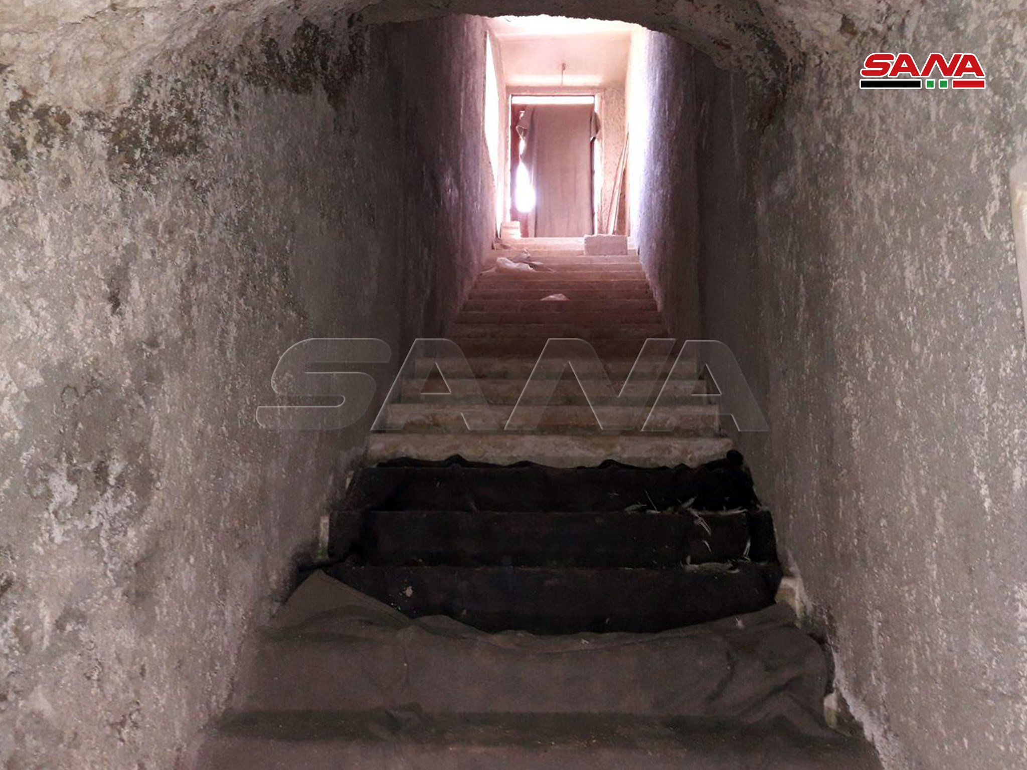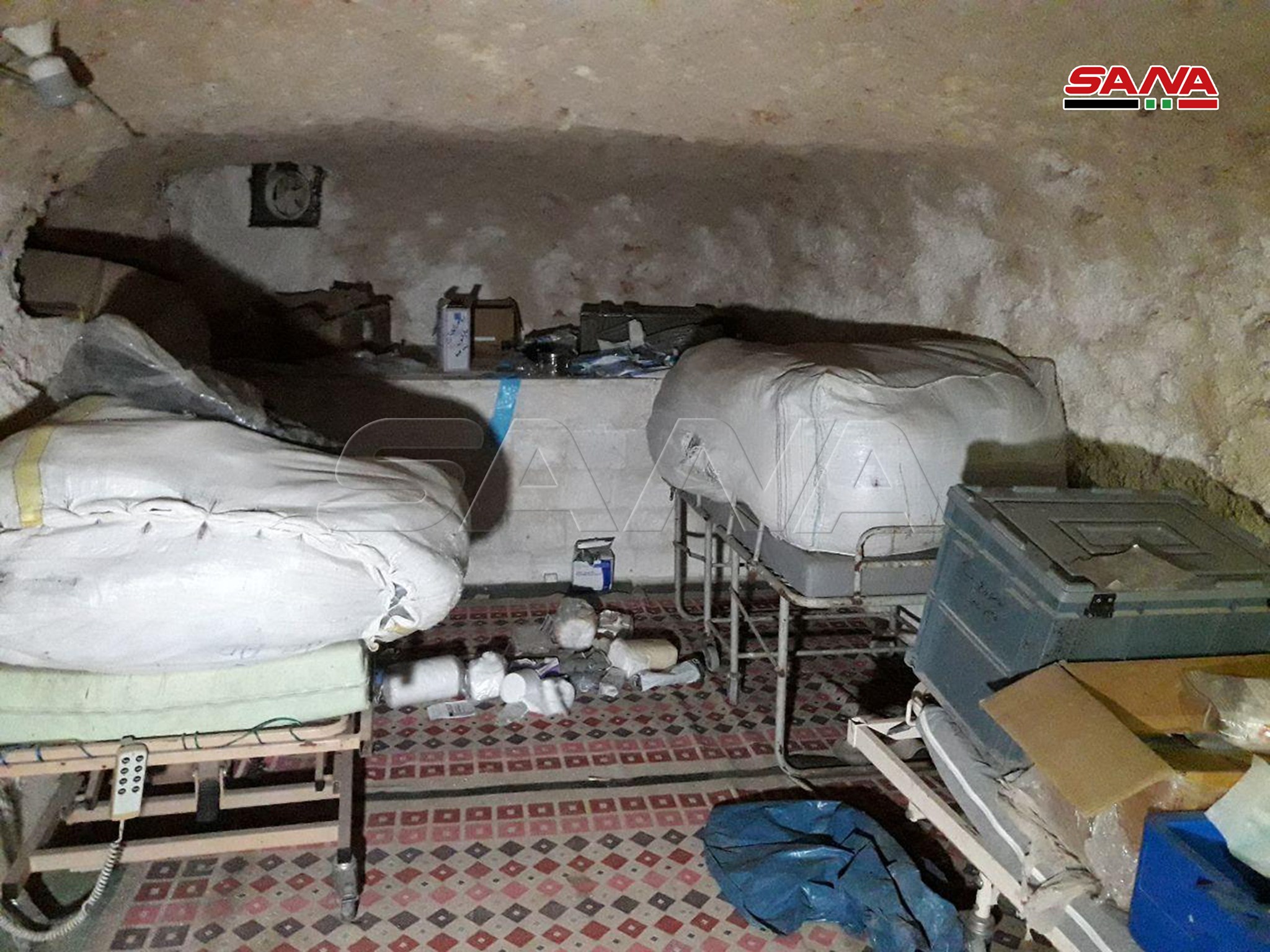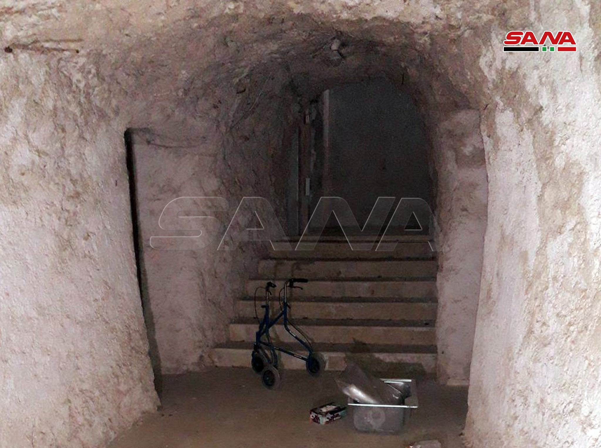 Durante sus operaciones de peinado en la recién liberada ciudad de Saraqueb en el este de Idleb, los militares descubrieron un gran cuartel general subterráneo de los terroristas del Frente Al-Nousra.