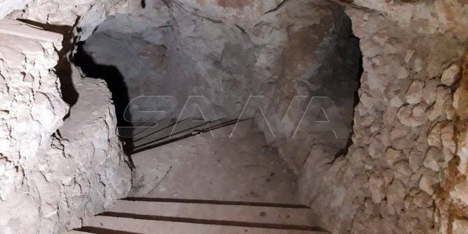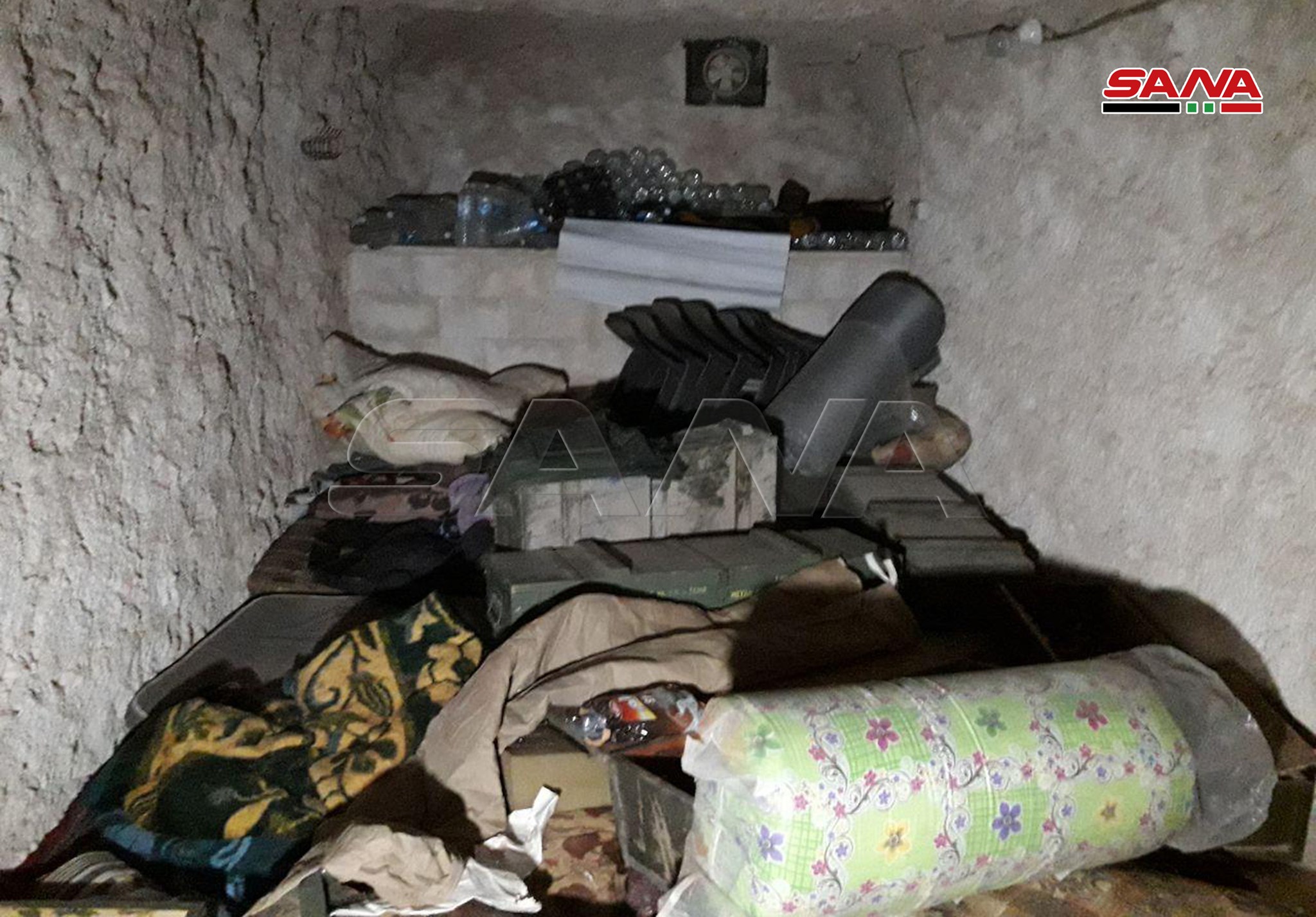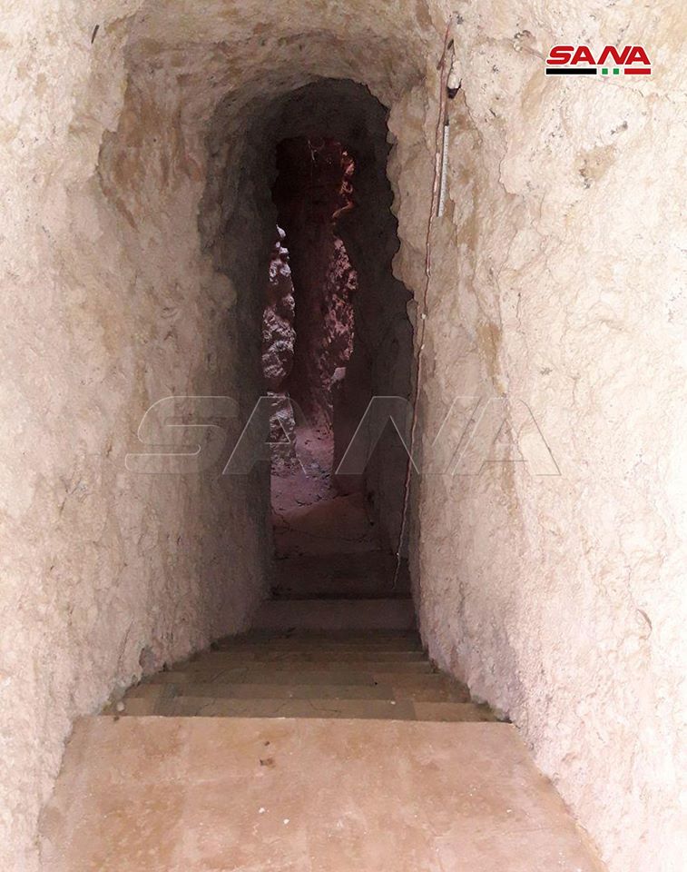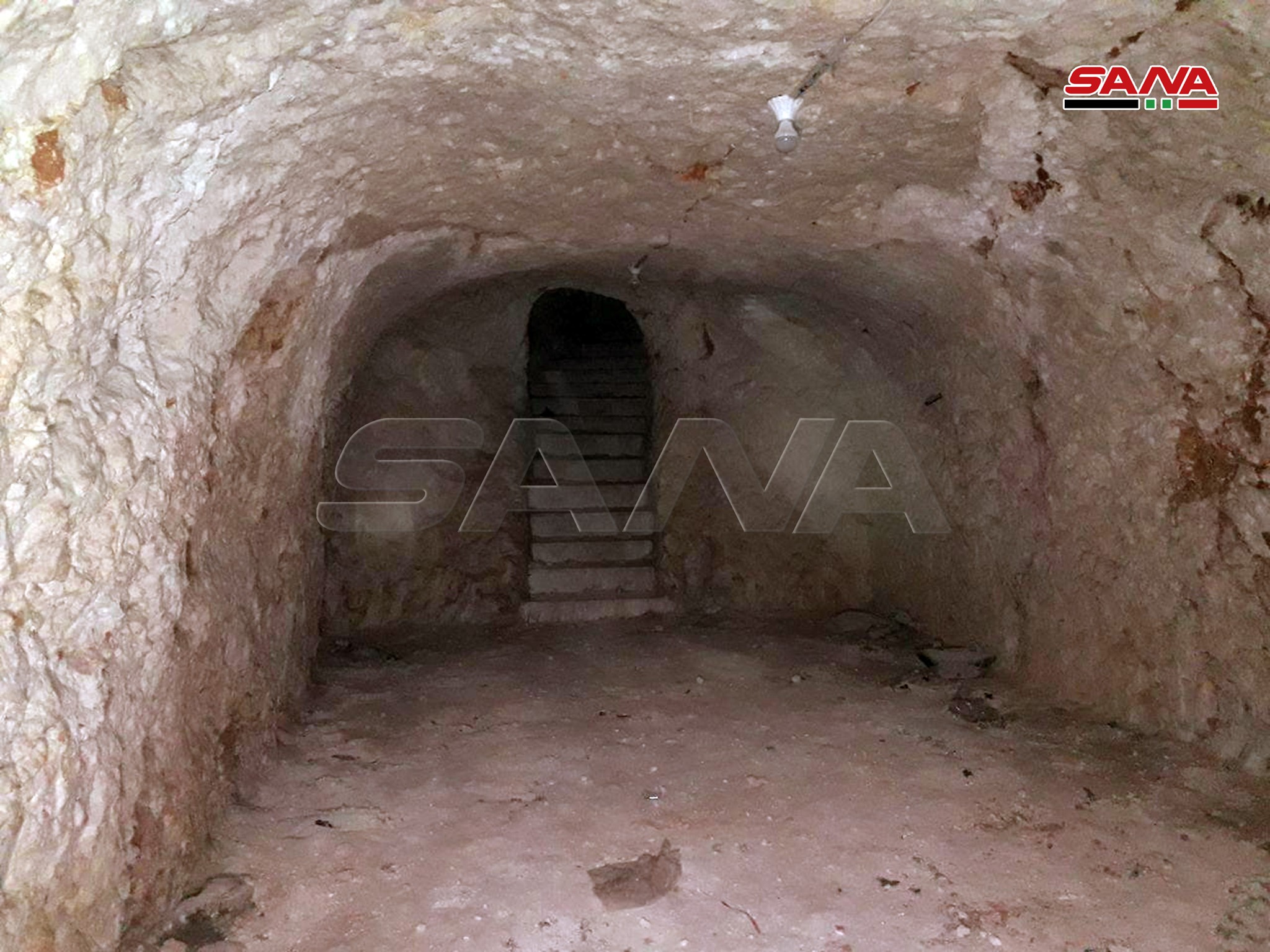 Durante sus operaciones de peinado en la recién liberada ciudad de Saraqueb en el este de Idleb, los militares descubrieron un gran cuartel general subterráneo de los terroristas del Frente Al-Nousra.
