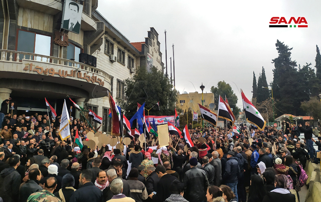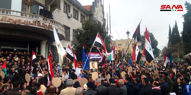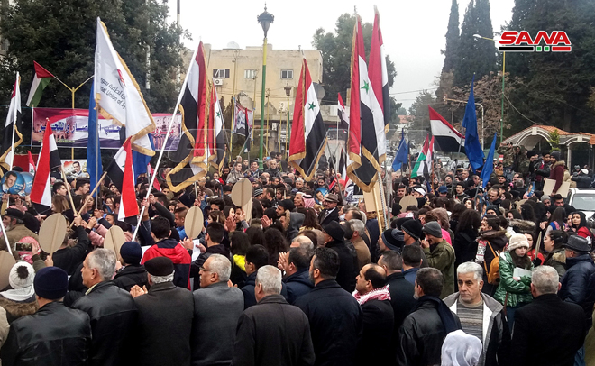 La ciudad de Sweida, cabecera de la provincia homónima, ubicada a 101 al sudeste de la capital Damasco, fue escenario de una masiva concentración para expresar el apoyo al ejército sirio y sus victorias contra el terrorista.