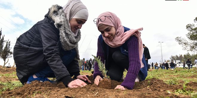Como parte de la primera fase del proyecto que termina a finales de abril próximo, los voluntarios sembraron mil 500 árboles en ambos lados de la carretera que conduce al Aeropuerto Internacional de Damasco.