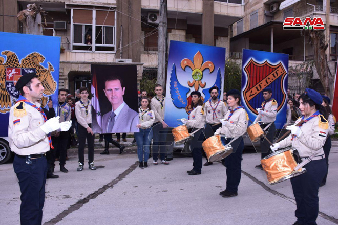 Miles de vecinos de la ciudad de Alepo, ubicada a unos 365 al norte de la capital Damasco, celebraron las recientes victorias del ejército árabe sirio sobre el terrorismo al oeste y noroeste de la ciudad.