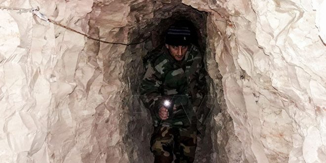 Las unidades del ejército descubrieron una red de túneles subterráneo que fueron excavado por los terroristas y comunica las localidades entre Kafer Sayeneh y Amerieh, en la provincia de Idleb.