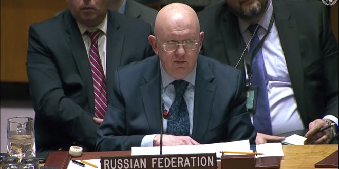 El representante permanente de Rusia ante la Organización de Naciones Unidas (ONU), Vasili Nebenzia, reiteró que los terroristas continúan sus ataques contra los civiles, los puntos del ejército sirio y la base aérea de Hemeimem.