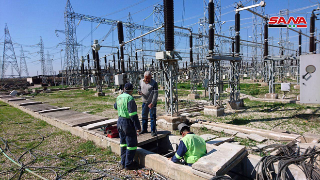 Los técnicos del Ministerio de Electricidad concluyeron en un tiempo récord la rehabilitación de las dos plantas de transformación eléctrica en las zonas recién liberadas de ICARDA y Zerbeh, en el sur de la provincia de Alepo.