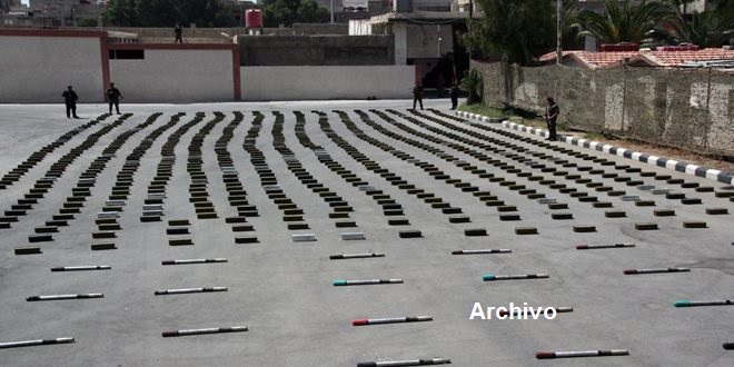 Según informó el corresponsal de SANA, los explosivos y proyectiles encontrados pesan alrededor de una tonelada y fueron ocultados en el sótano de uno de los edificios destruidos.