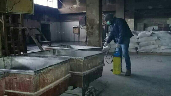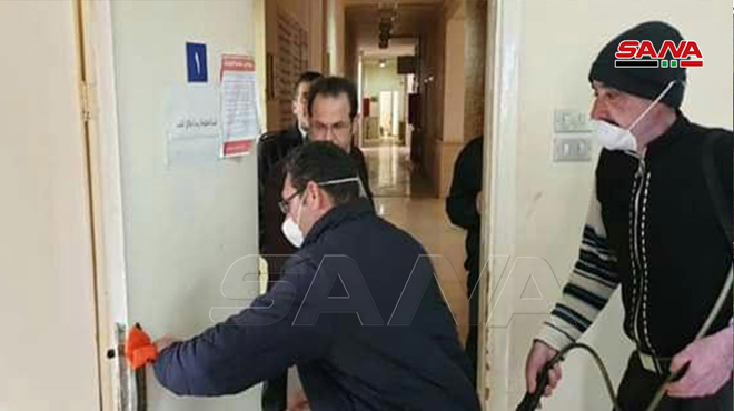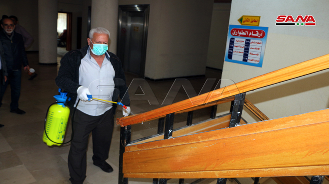 En la provincia de Deraa en el sur del país, las direcciones e instituciones públicas y los ayuntamientos llevaron a cabo campañas integrales de esterilización de las instalaciones públicas y fumigación en las calles y áreas de recolección de basura.
