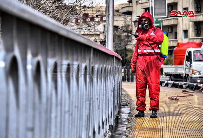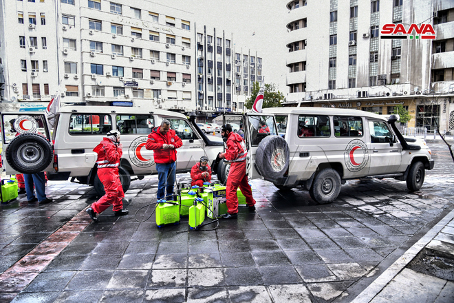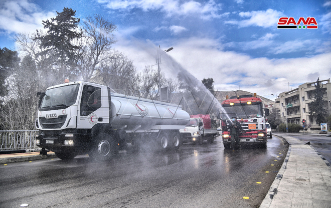 La Gobernación de Damasco, en cooperación con la Media Luna Roja Siria (MLRS), lanzó hoy una campaña de esterilización a gran escala a través de automóviles equipados con desinfectantes como parte de medidas de precaución para hacer frente al Coronavirus y mantener la sanidad pública.