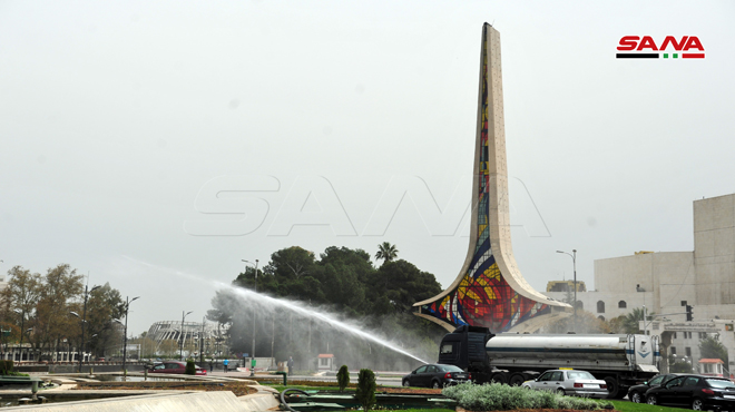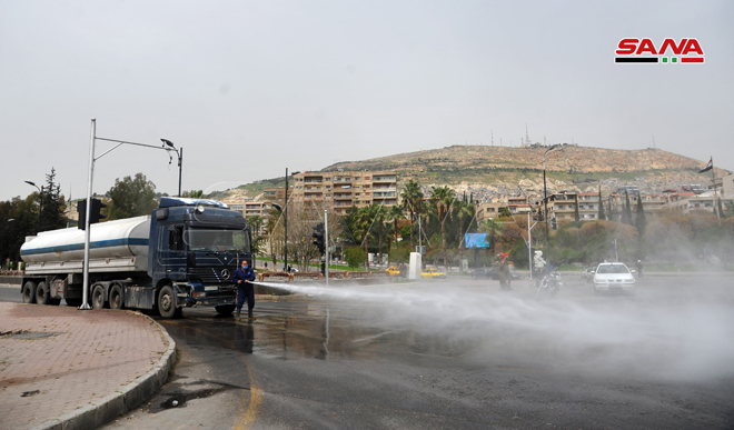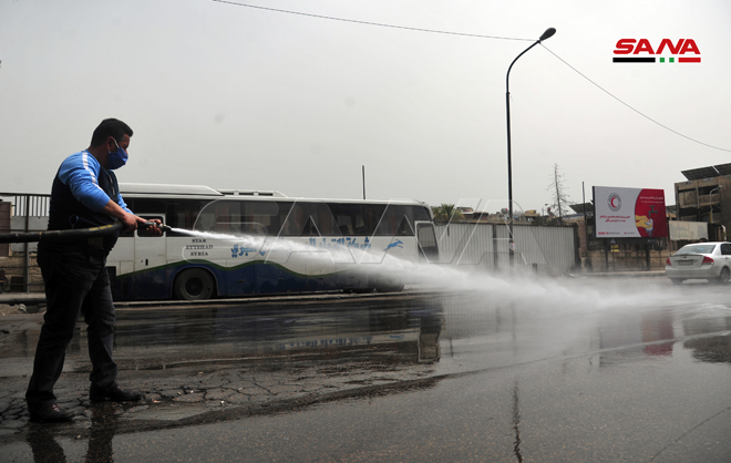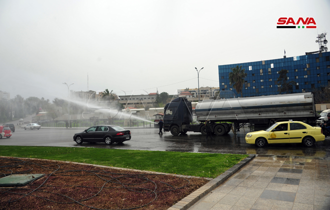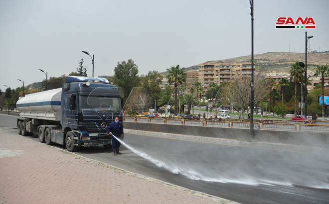 La Gobernación de Damasco, en cooperación con la Media Luna Roja Siria (MLRS), continúa con su campaña de esterilización a gran escala a través de automóviles equipados con desinfectantes como parte de medidas de precaución para hacer frente al Coronavirus y mantener la sanidad pública.