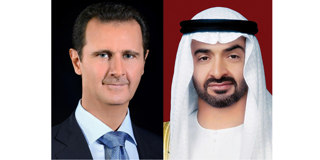 El presidente Bashar Al-Assad recibió hoy una llamada telefónica de Mohammed bin Zayed Al Nahyan, el príncipe heredero de Abu Dhabi y comandante supremo adjunto de las Fuerzas Armadas de Emiratos Árabes Unidos.