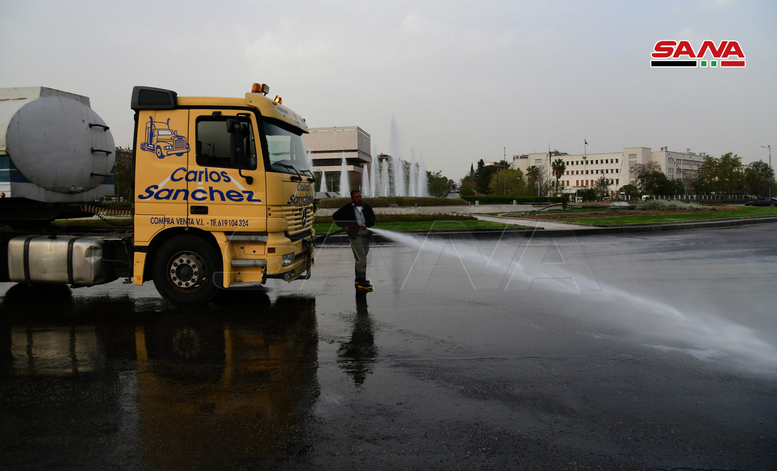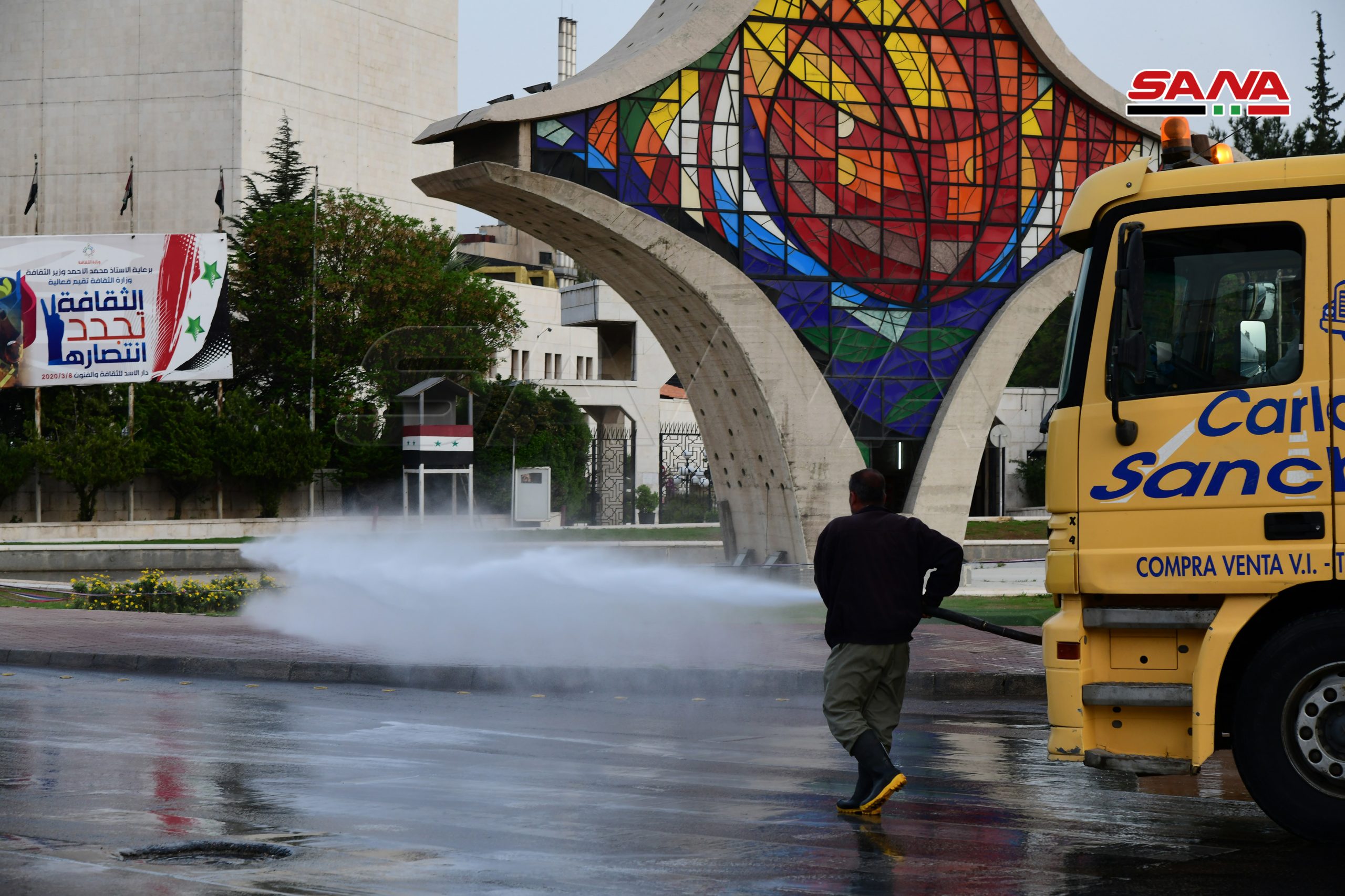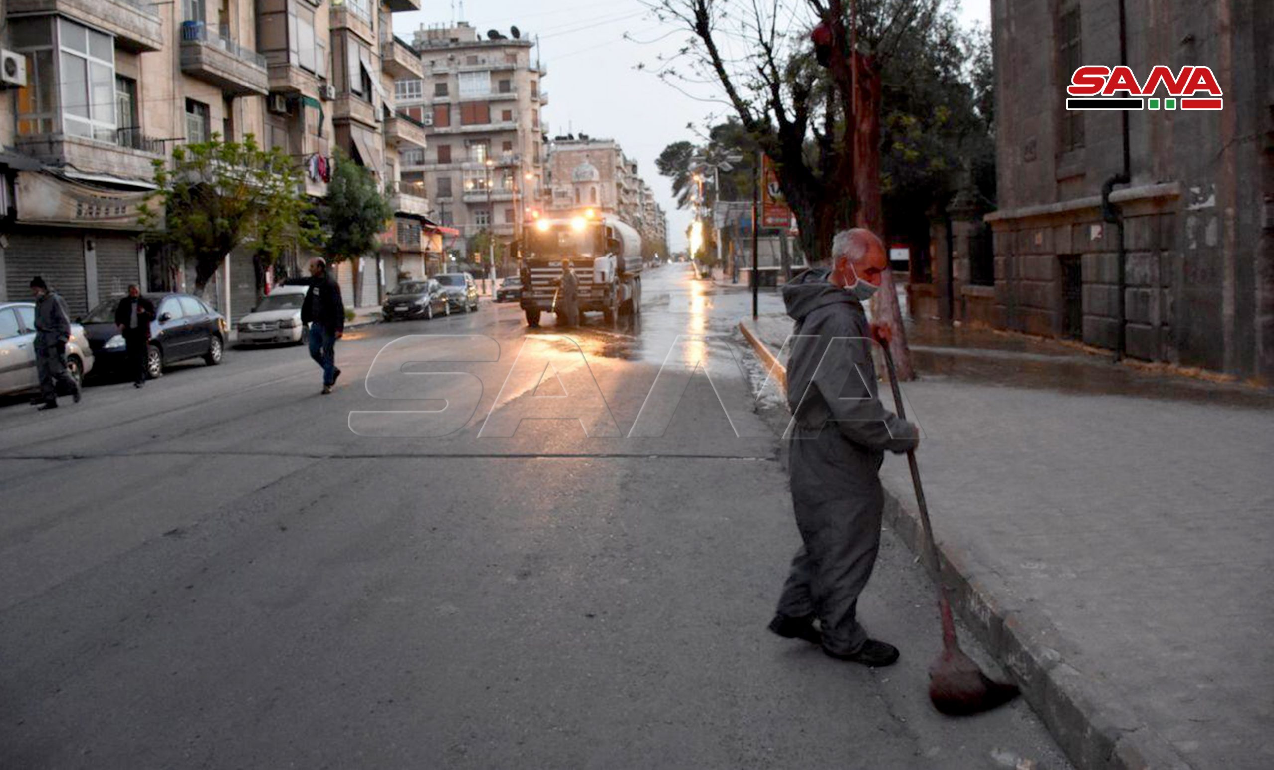 Las gobernaciones de Alepo y Damasco lanzaron campañas de limpieza y desinfección durante el horario de toque de queda, como parte de las medidas de prevención de la pandemia del nuevo coronavirus.
