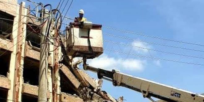 Agregó que se establecerá la electricidad en la zona industrial de al-Lairmoun en Alepo a principios del próximo mes de mayo.