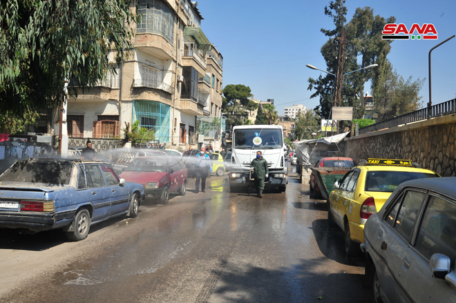 En este sentido, fueron lanzadas varias campañas de limpieza y desinfección en los vecindarios, mercados, calles en las ciudades de Damasco.
