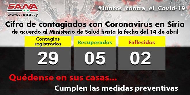 Siria anunció el primer caso positivo de esta pandemia el 22 de marzo pasado.