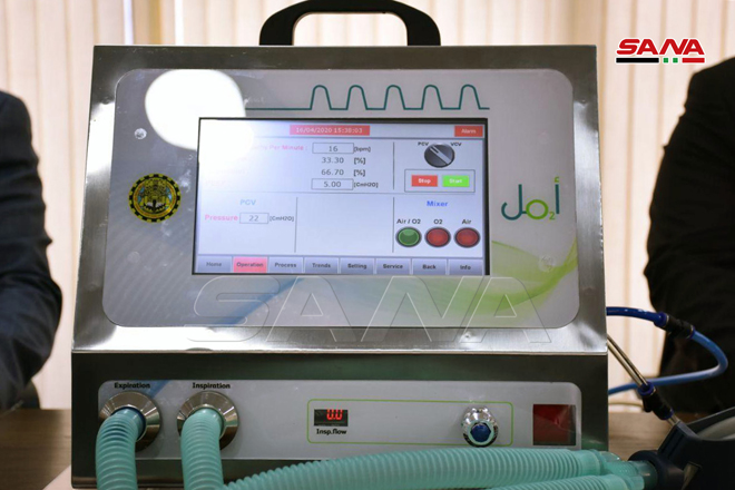 La Cámara de Industria de Alepo presentó el primer respirador artificial de fabricación nacional.