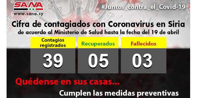 “El número total de casos registrados en Siria hasta la fecha alcanzó 39 casos, cinco de los cuales se recuperaron, mientras tres perdieron la vida”, aclaró el Ministerio en un comunicado.
