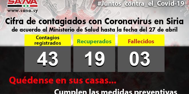 Siria anunció el primer caso positivo de esta pandemia el 22 de marzo pasado.