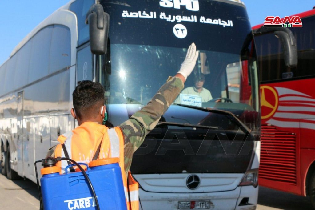 De las medidas preventivas tomadas en las terminales de autobuses y en las entradas y salidas de las ciudades de Siria en el último día de permitir los viajes interprovinciales, 2 de mayo del 2020