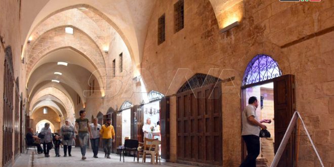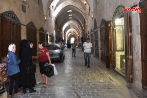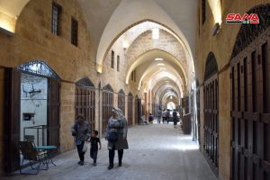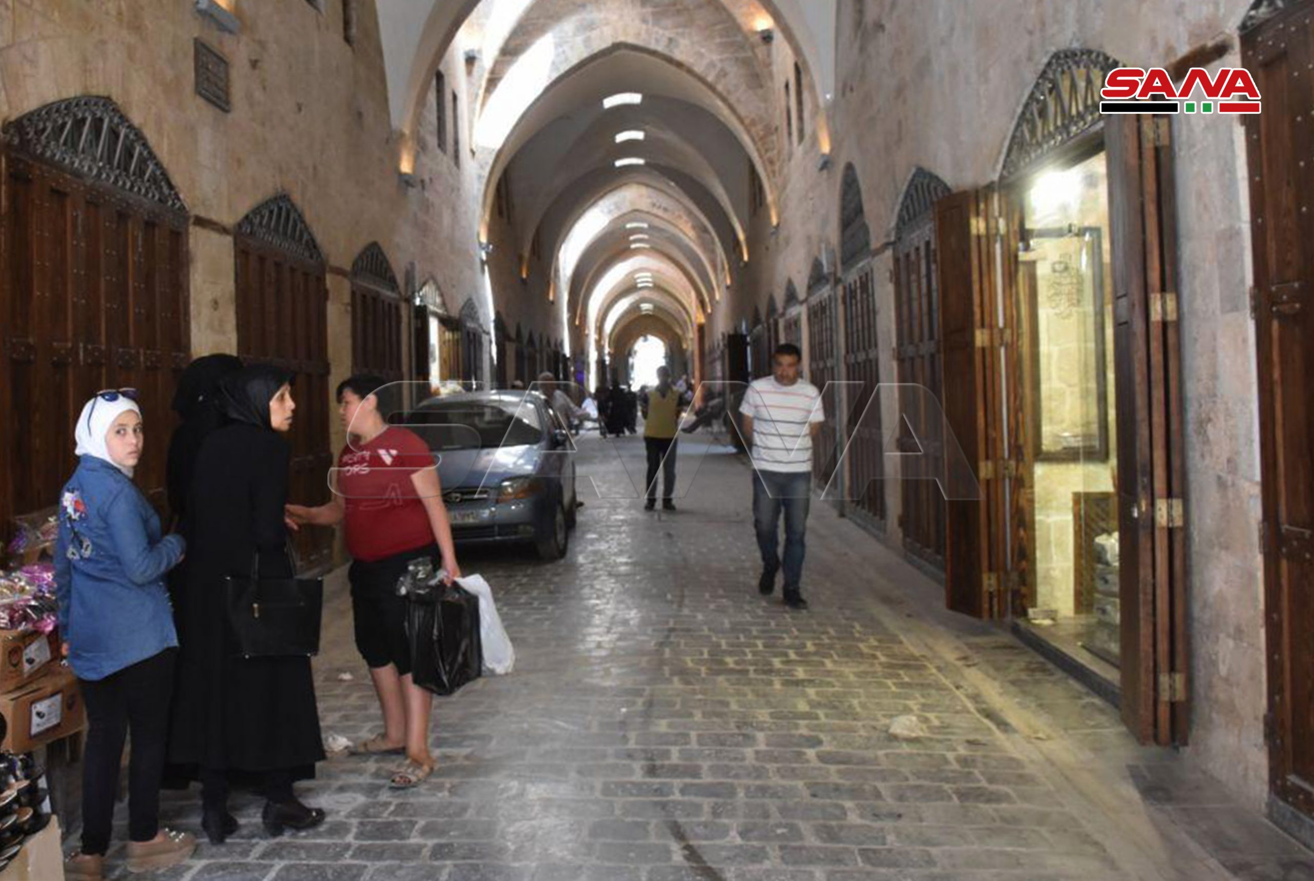 El antiguo zoco Saktieh en el casco antiguo de la ciudad norteña de Alepo recupera gradualmente su actividad comercial tras ser rehabilitado de los daños provocados por los terroristas durante su ocupación de la urbe entre los años 2012 y 2016.