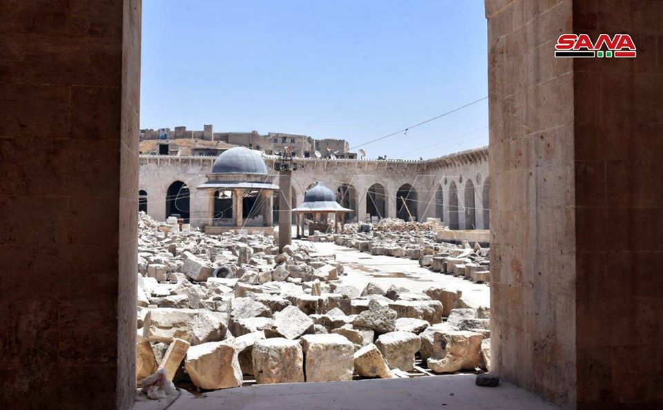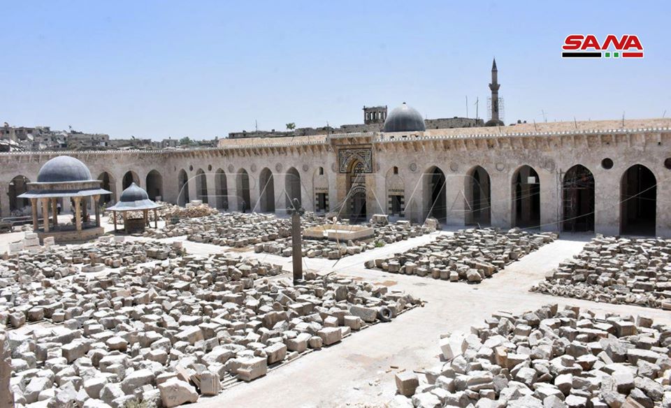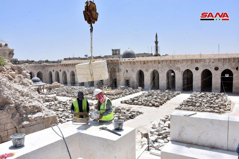 17/05/2020 Alepo, SANA Avanzan las obras de rehabilitación de la Gran Mezquita Omeya en la ciudad de Alepo, que fue seriamente dañada por el terrorismo. Las obras comenzaron en el 2016, fecha de liberación de la ciudad a manos del Ejército Árabe Sirio. 2020-05-17 fady
