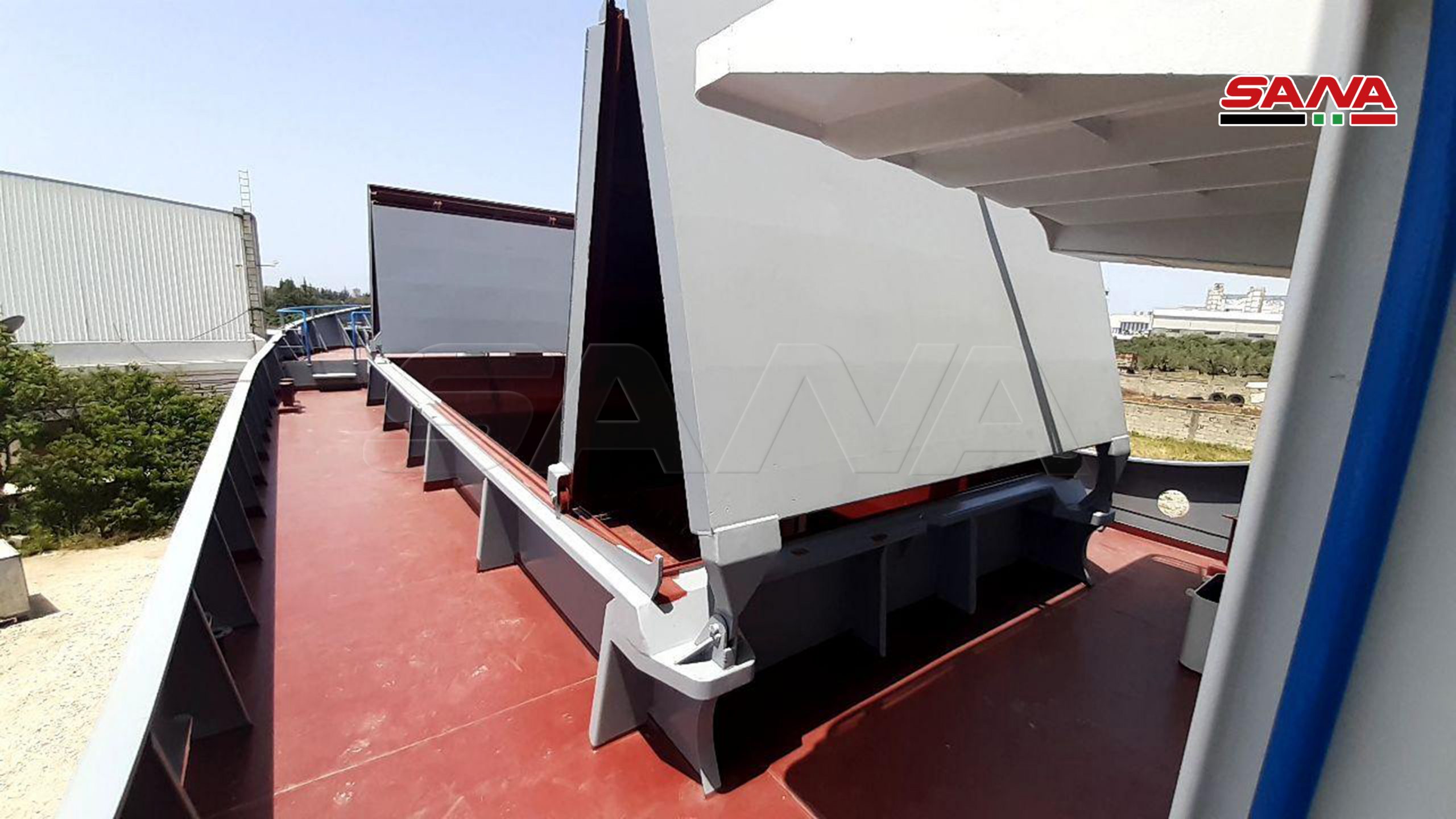 Abu Nasr explicó a la corresponsal de SANA que el peso de la nave llega a 160 toneladas con una longitud de 28 metros y 7 de ancho y cuya velocidad máxima puede llegar a 20 millas náuticas y puede llevar 300 toneladas de cargamento.