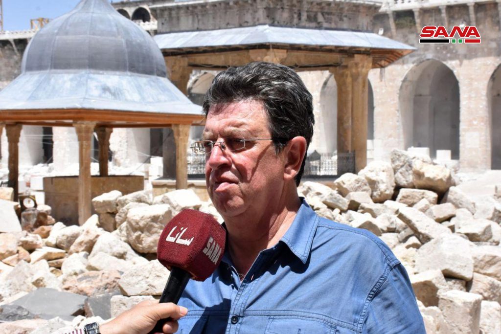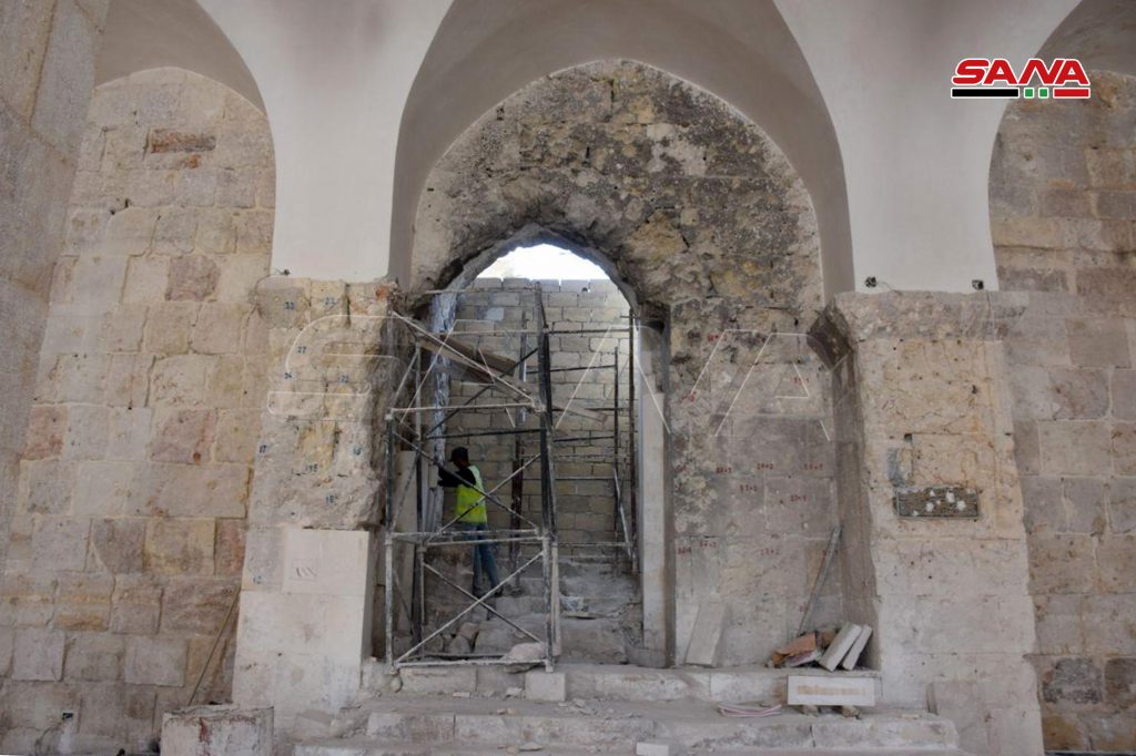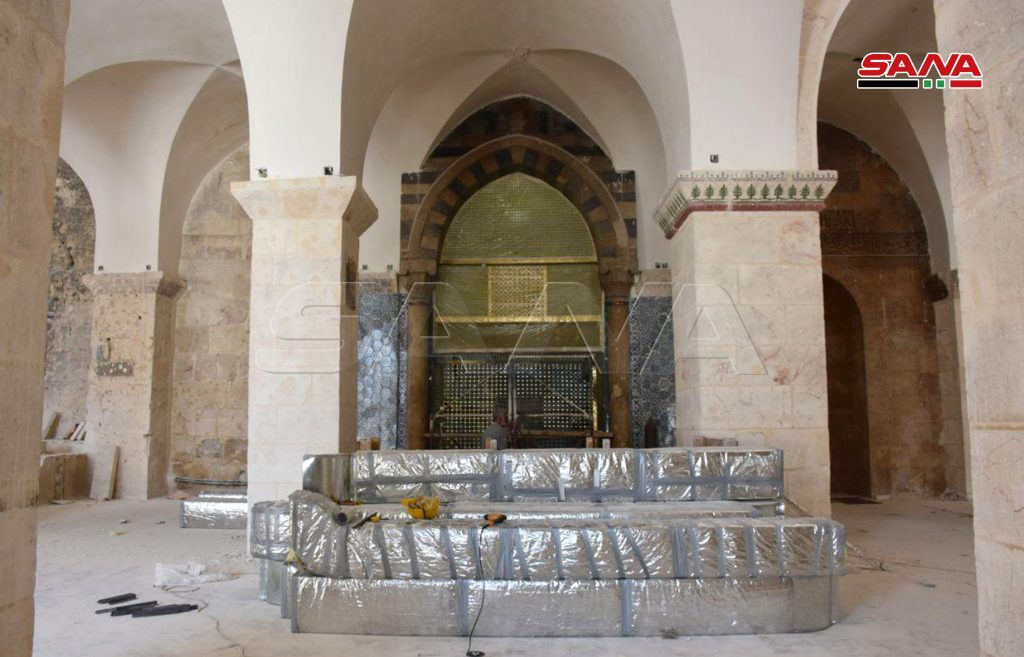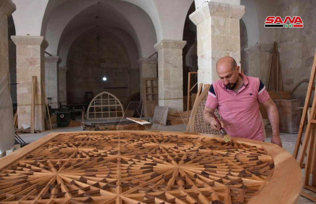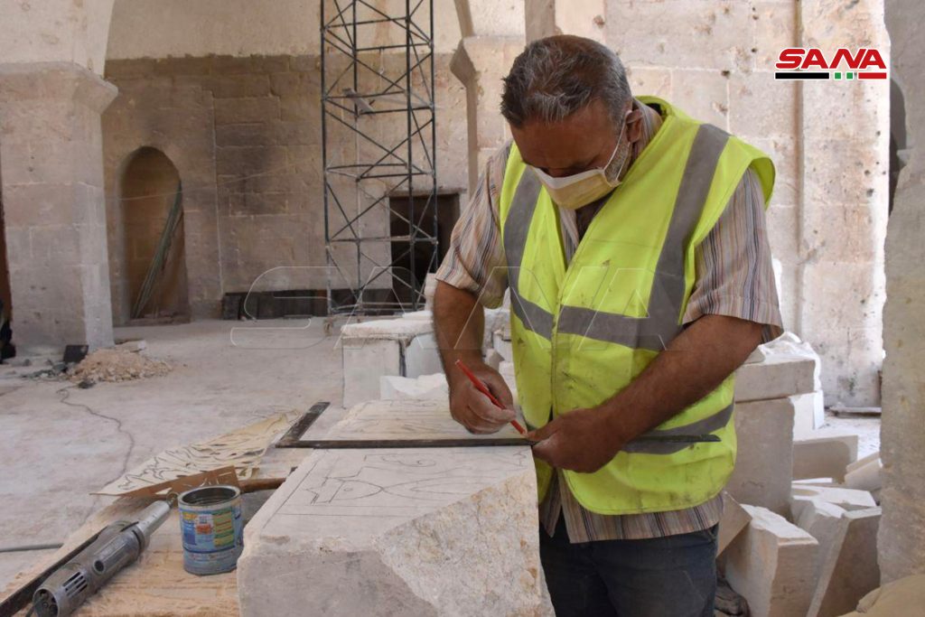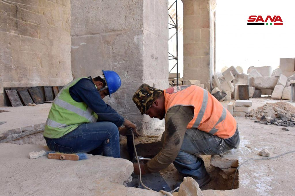 Las obras de restauración de la Gran Mezquita Omeya en Alepo continúan con un ritmo acelerado y los constructores y restauradores llevan a cabo su trabajo con gran profesionalismo y bajo la supervisión de un grupo de ingenieros y especialistas.