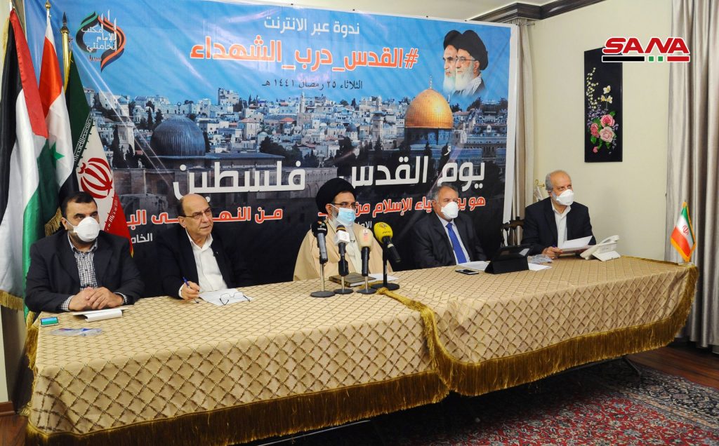 Con motivo del Día Mundial de Jerusalén (Al-Quds), la Embajada de Irán en Damasco organizó un acto por videoconferencia en el cual participaron políticos e intelectuales de Siria, el Líbano e Irán.