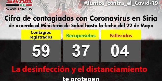 “El número total de casos registrados en Siria hasta la fecha asciende a 59, de los cuales 37 se recuperaron, mientras 4 perdieron la vida”, aclaró el Ministerio en un comunicado.