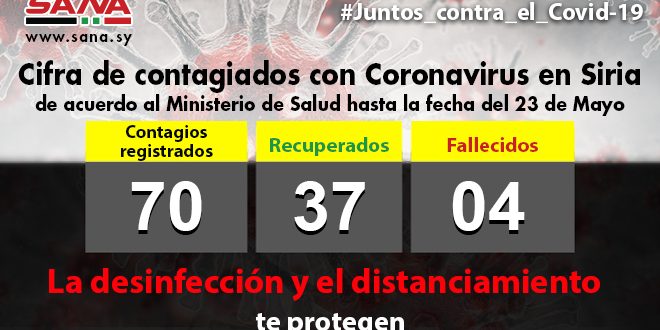 “El número total de casos registrados en Siria hasta la fecha asciende a 70, de los cuales 37 se recuperaron, mientras 4 perdieron la vida”, aclaró la nota.