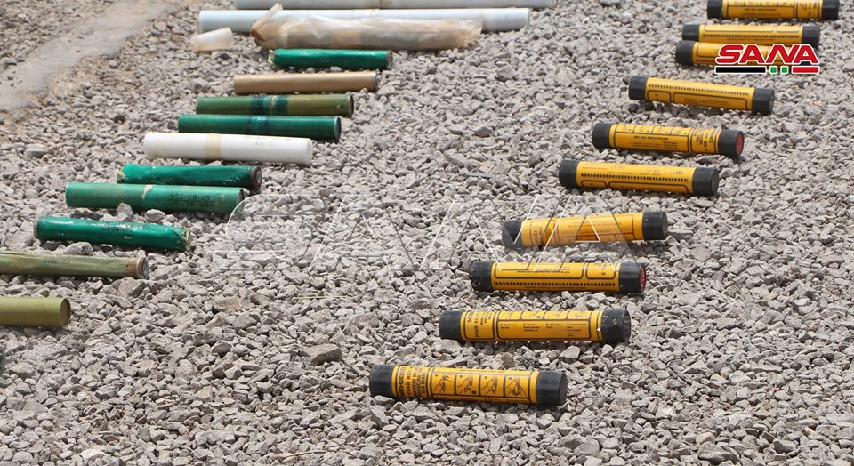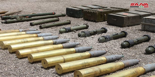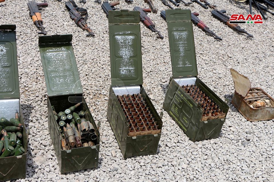 El último miércoles, las autoridades competentes incautaron grandes cantidades de diversas armas y municiones remanentes de los terroristas, algunas son israelíes y estadounidenses, en el sur de Siria.