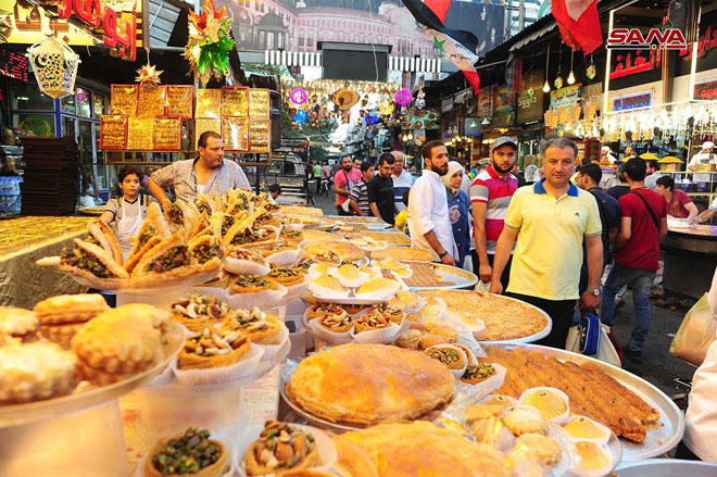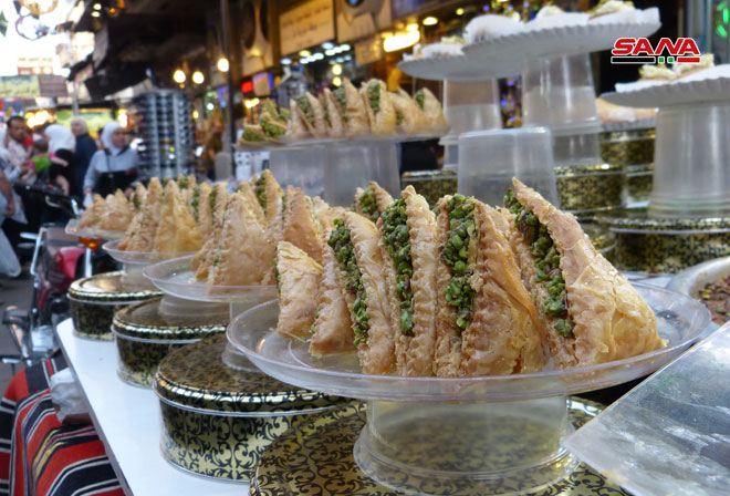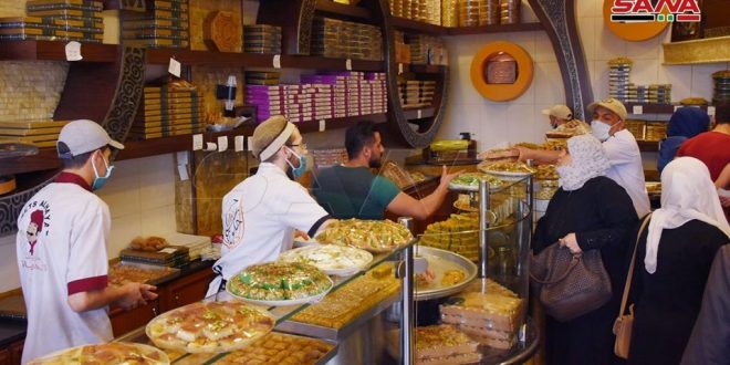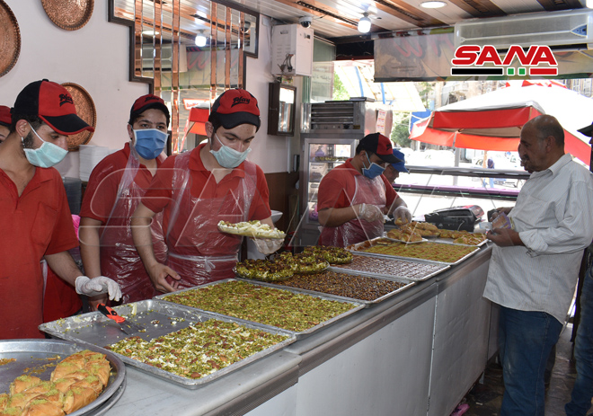 23/05/2020 Damasco, SANA Hacer y brindar dulces durante los días de Eid Al-Fitr es una de las tradiciones que hereden los sirios de generación a generación. Os dejamos con esas fotos captadas por SANA de los dulces más famosos del país. A. H./ F. M. Los típicos dulces de Eid al-Fitir en Siria. (Fotos) 2020-05-23 ammar