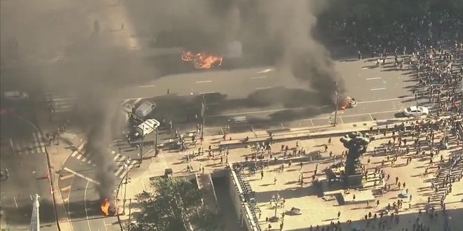 31/05/2020 Washington, SANA Filadelfia hoy.. manifestantes prenden fuego en vehículos de la policía en protesta contra su racismo 2020-05-31 Esraa