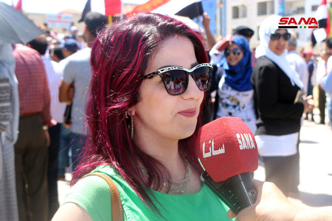Esta concentración, según afirman los participantes, transmite un mensaje a Estados Unidos y sus aliados de que el pueblo sirio se mantendrá firme hasta lograr la victoria.
