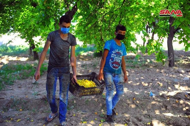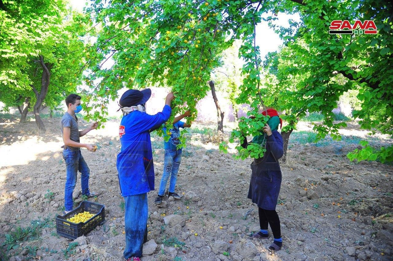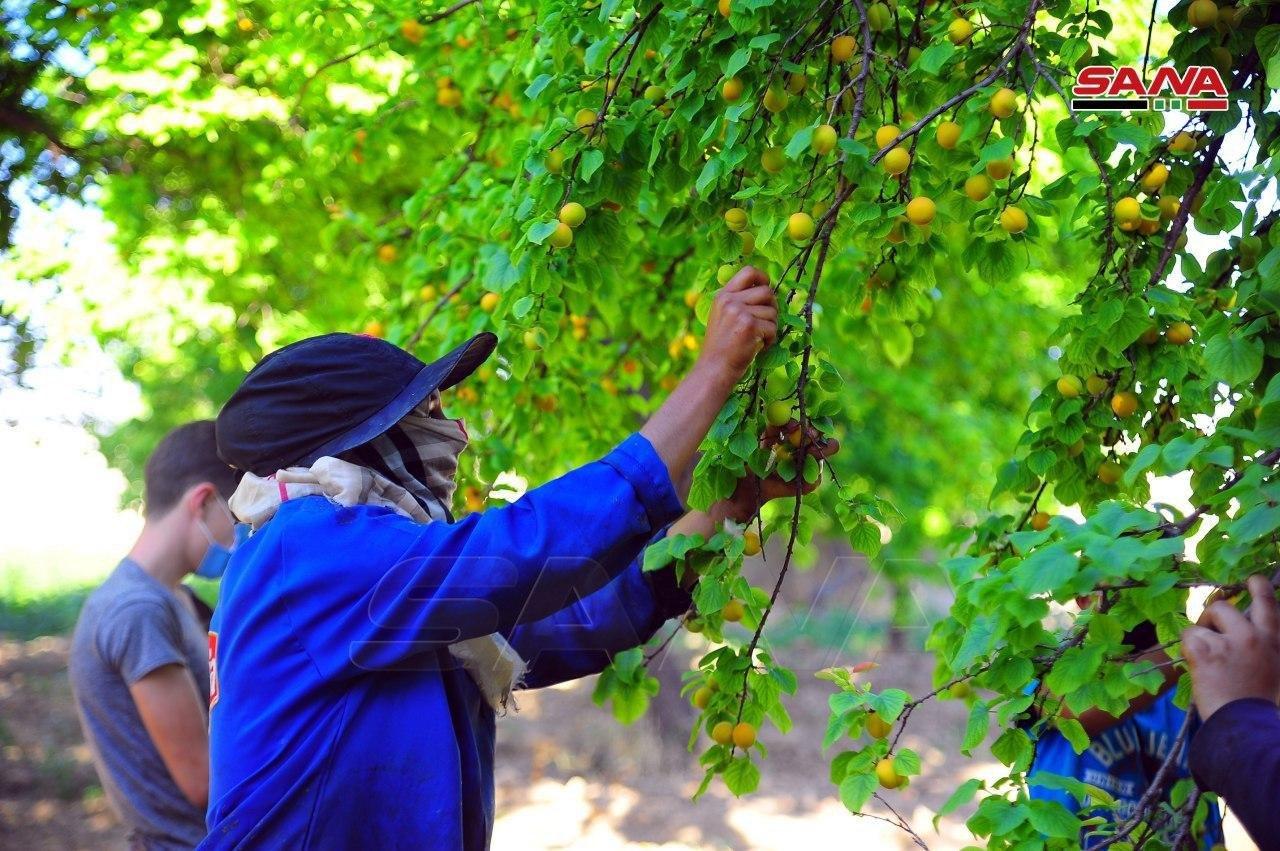 Los agricultores de la región de Ghouta Oriental al este de la capital Damasco comenzaron la cosecha del albaricoque, un fruto que se come fresco y entra en la industria del típico dulce Qamar Eddin, (pasta seca de albaricoque)