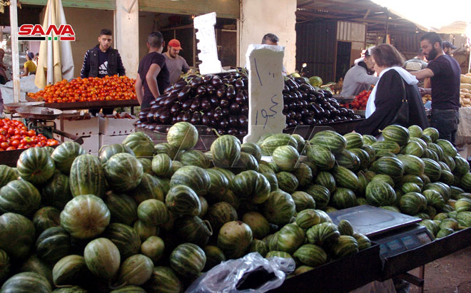 Mercados de frutas y vegetales en la ciudad sureña de Sweida