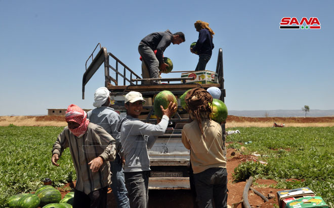 16/06/2020 Sweida, SANA Comenzó en la provincia de Sweida, en el sur de Siria, la cosecha de la sandía, cuya producción se estima este año en 6300 toneladas. F.M/ E.D 2020-06-16 Esraa