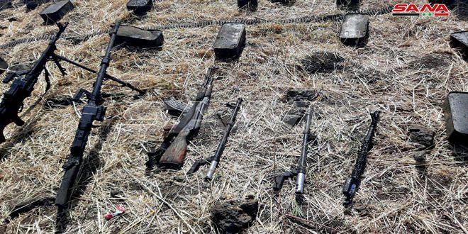 Durante sus rutinarias operaciones del peinado y desminado en las zonas liberadas, el ejército sirio halló armas y municiones en sedes abandonadas por las agrupaciones armadas, algunas de las cuales son de fabricación occidental.