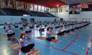 La actividad se celebró en la ciudad deportiva Al-Jalaa en Damasco bajo el título: “Yoga para la armonía y la paz”.