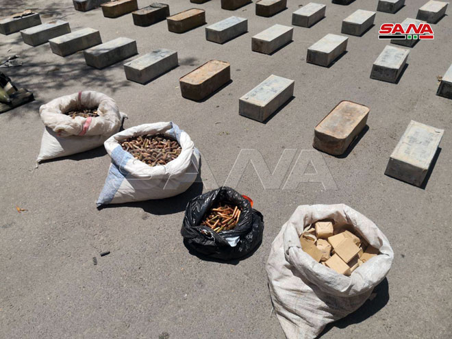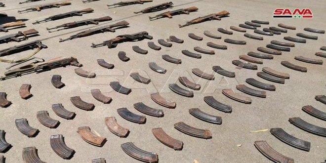 Unidades del Ejército Árabe Sirio incautaron hoy, armas y municiones, algunas son de origen occidental, en sedes abandonadas por los terroristas, en la Región Sur del país.