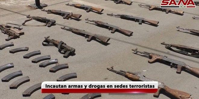 21/06/2020 Damasco, SANA Unidades del Ejército Árabe Sirio incautaron hoy, armas y municiones, algunas son de origen occidental, en sedes abandonadas por los terroristas, en la Región Sur del país. Incautan armas y drogas en sedes terroristas 2020-06-21 Esraa