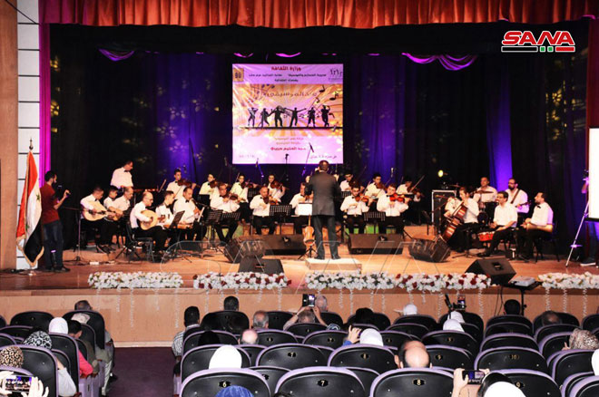 En la ceremonia que se efectuó en el teatro del Sindicato de Artistas en la ciudad de Alepo, fueron interpretadas varias piezas de música oriental y occidental.