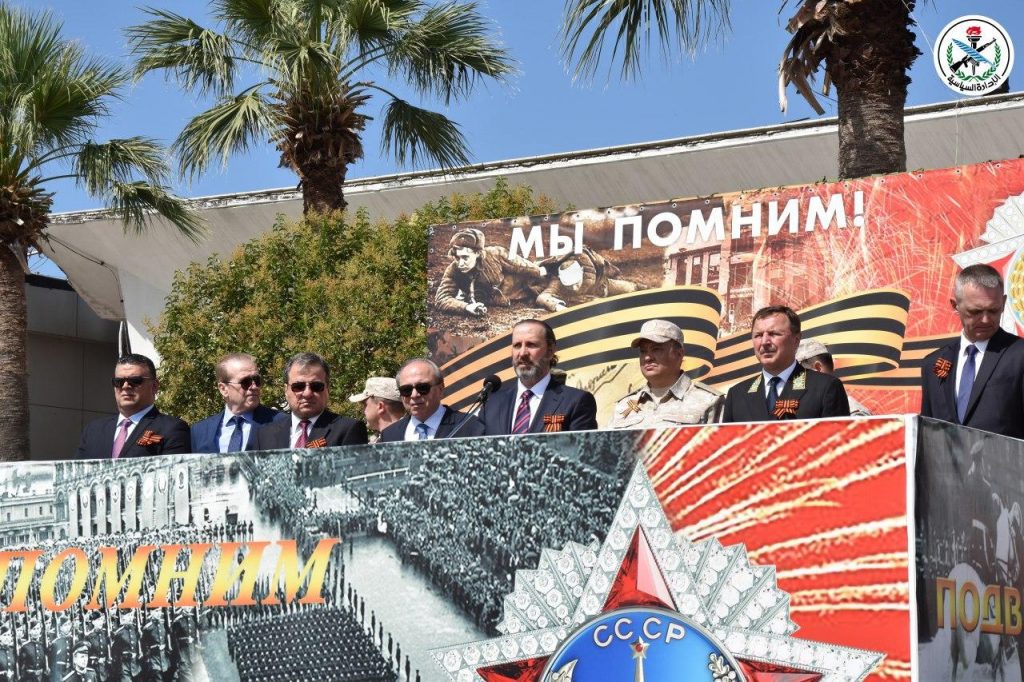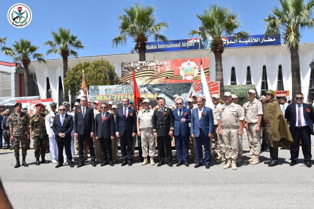 En representación del presidente Bashar al-Assad, el ministro de Asuntos Presidenciales, Mansour Azzam, participó en una ceremonia celebrada por la jefatura de las fuerzas rusas que operan en Siria en la base militar rusa de Hemeymim en la provincia de Latakia, con motivo del 75º aniversario de la victoria soviética sobre el nazismo en la Segunda Guerra Mundial.