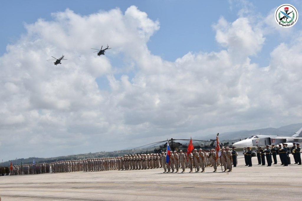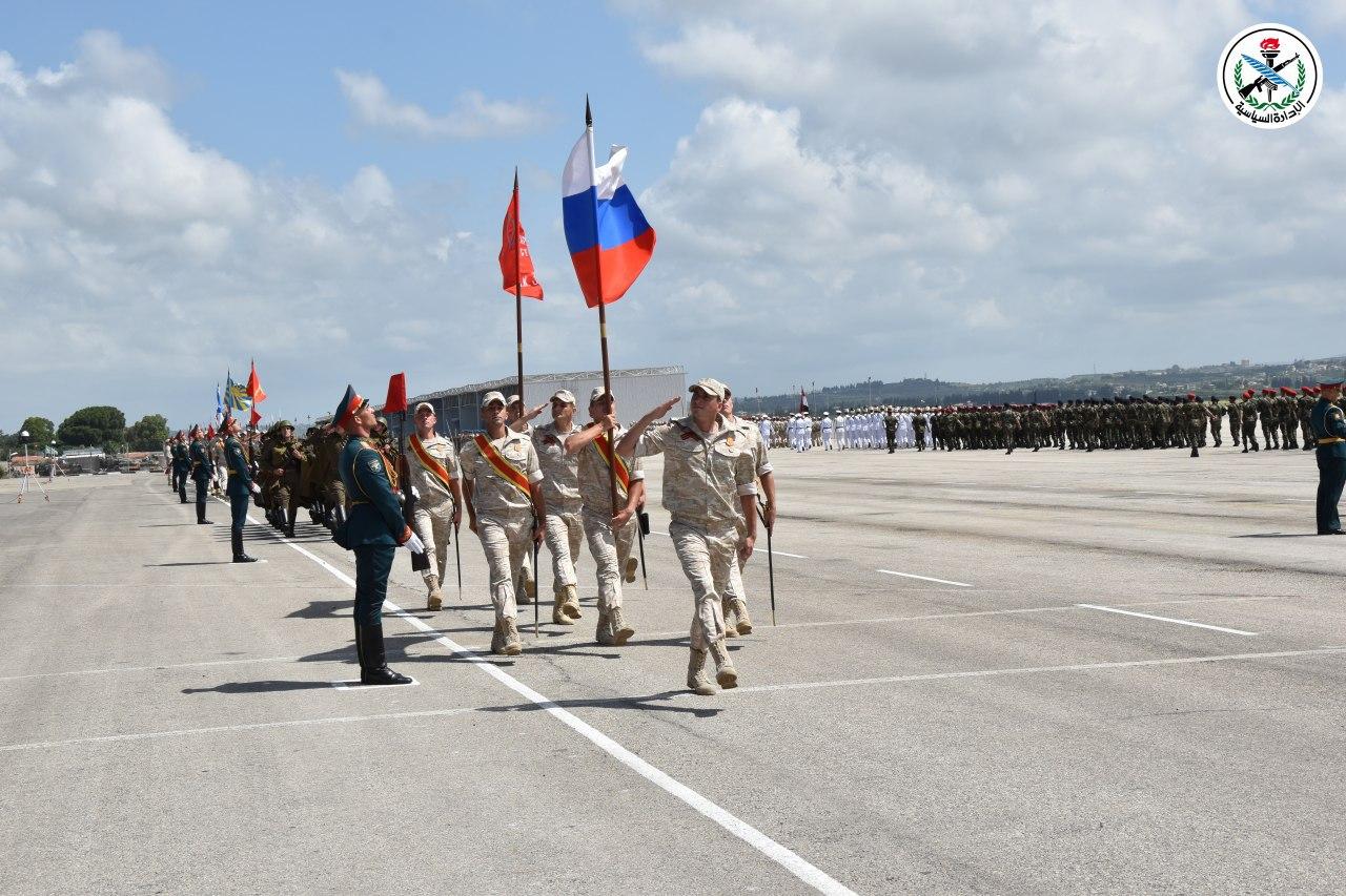 La celebración incluyó un desfile militar en el que participaron unidades militares sirias y rusas. También, se rindió homenaje a varios oficiales y soldados rusos y sirios en reconocimiento por sus grandes esfuerzos en la lucha antiterrorista.
