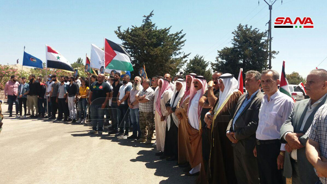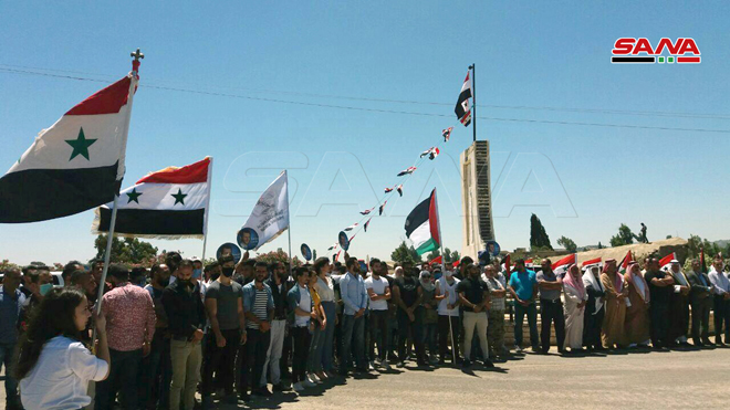 En una concentración en la Plaza de Liberación en la ciudad de Quneitra, los reunidos manifestaron su confianza en la capacidad del Ejército Árabe Sirio de acabar con el proyecto sionista-estadounidense y sus herramientas de mercenarios terroristas.