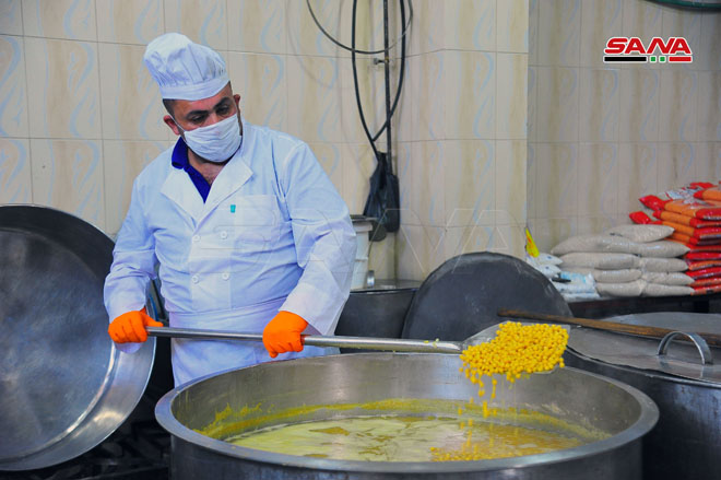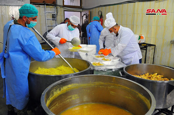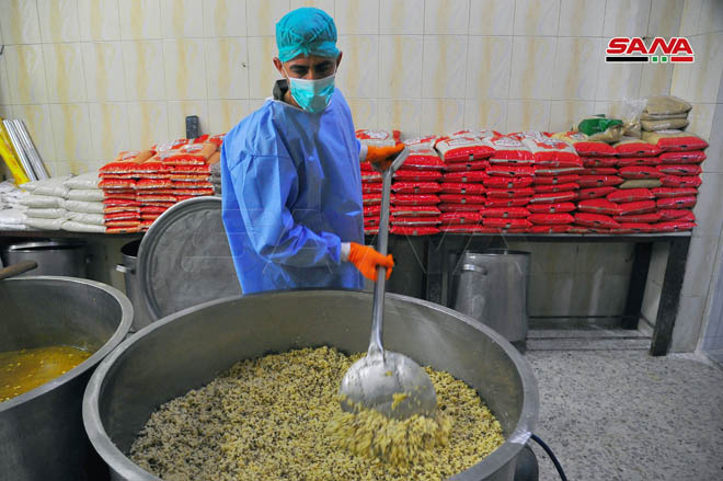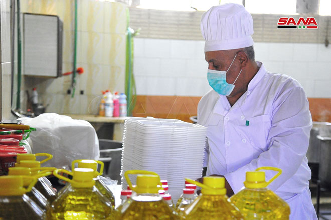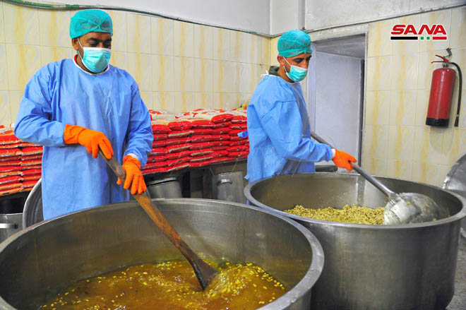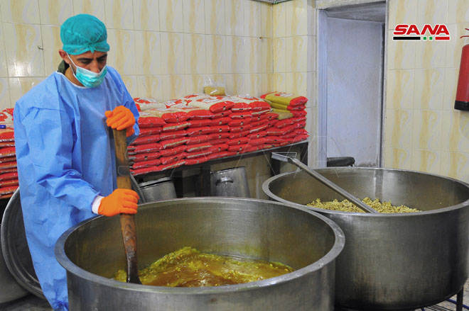 La Cocina central de la provincia de Rif Dimashq ofrece miles de raciones diarias para asegurar la alimentación de centros de cuarentena y familias necesitadas.