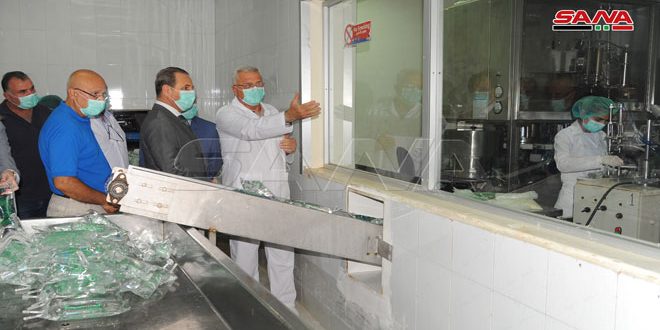 El Ministro de Salud, Nizar Yazaji, inspeccionó hoy los preparativos finales para la inauguración de una nueva línea de producción de tabletas y cápsulas en la Fábrica de Productos Farmacéuticos y Sueros “Dimas” en la provincia de Damasco-campo, la cual comenzará a producir a principios del próximo mes de septiembre.