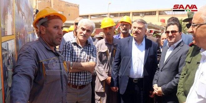 El titular inspeccionó la marcha del trabajo en la recién rehabilitada Compañía Eléctrica Estatal de Deir Ezzor y condecoró a los trabajadores de las instalaciones de Al-Taim que contribuyeron a la rehabilitación del segundo grupo generadores.